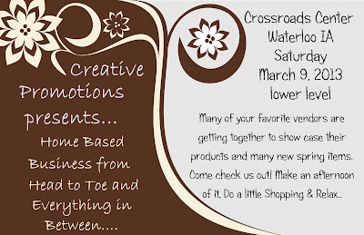 I am pleased to say I am attending my very first craft/vendor show at the Crossroads Mall in Waterloo, Iowa on Saturday, March 9th! Below is the flier and I really hope you can make it out to see me! I will have a lot of inventory on hand AND if you buy via cash & carry, you save on shipping!